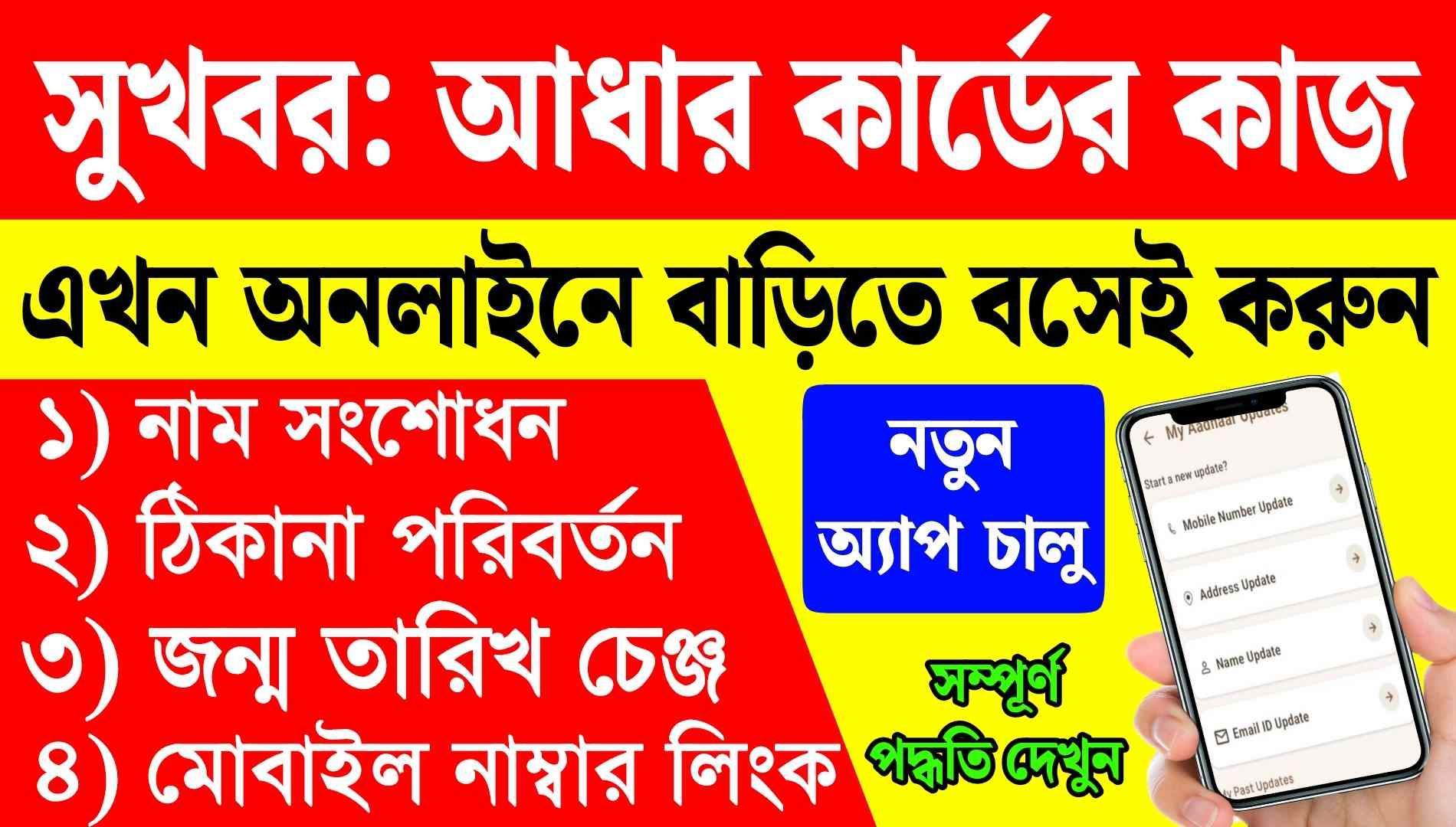 আর আপনাদেরকে আধার কার্ডের কাজের জন্য যেতে হবে না কোনো আধার সেন্টার বা পোস্ট অফিসে । ভারত সরকার আপনাদের জন্য আধার কার্ডের নতুন অ্যাপ নিয়ে এসেছে এই অ্যাপের মাধ্যমে আপনারা আধার কার্ডের নামের বানান সংশোধন, ঠিকানা পরিবর্তন, মোবাইল নাম্বার যোগ এবং পরিবর্তন এছাড়া ইমেইল আইডি যোগ বা পরিবর্তন খুব সহজেই করতে পারবেন ।