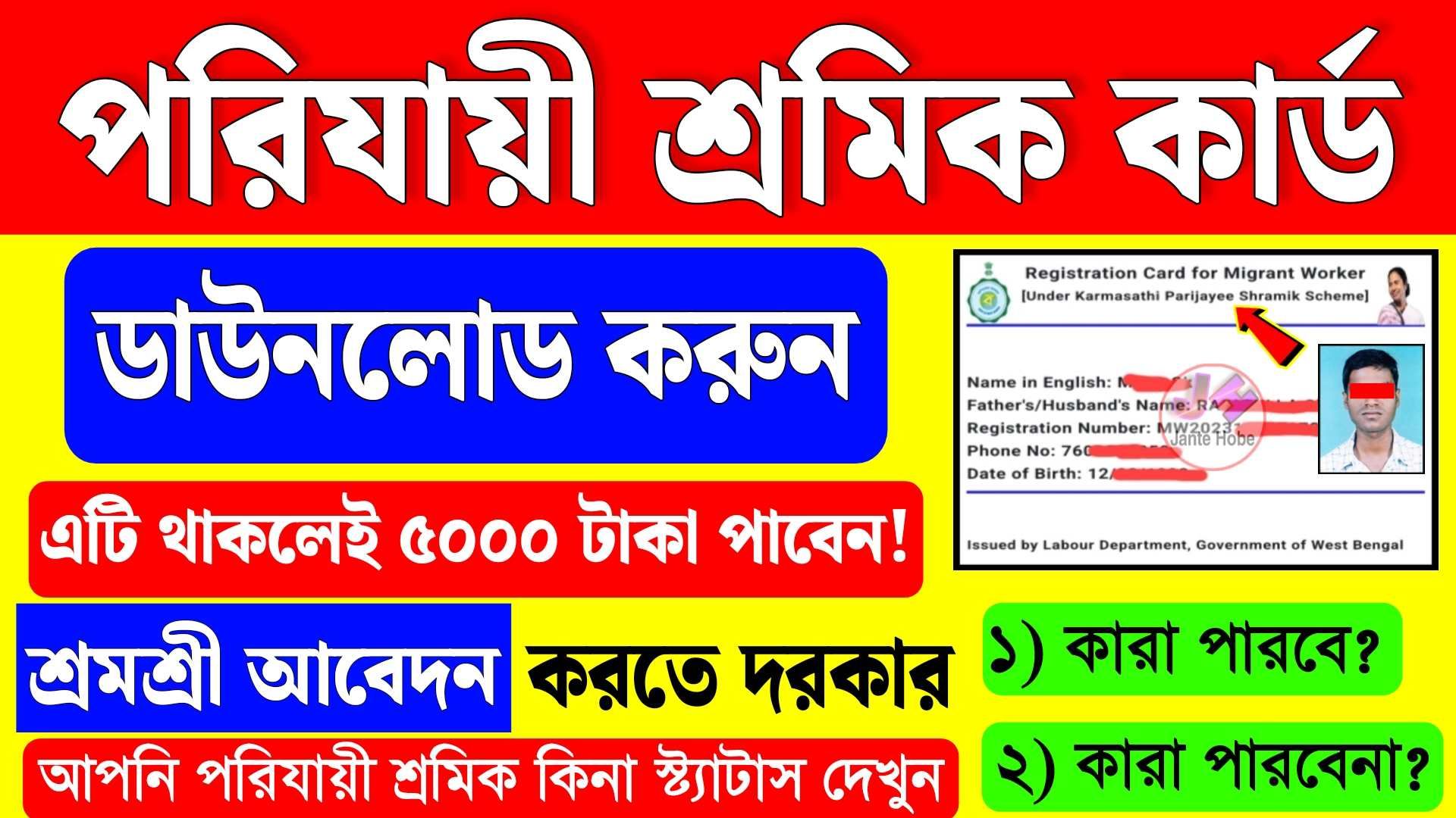 পরিযায়ী শ্রমিকদের শ্রমিক কার্ড দিচ্ছে সরকার , ডাউনলোড করুন : Porijayi Sromik Card Download