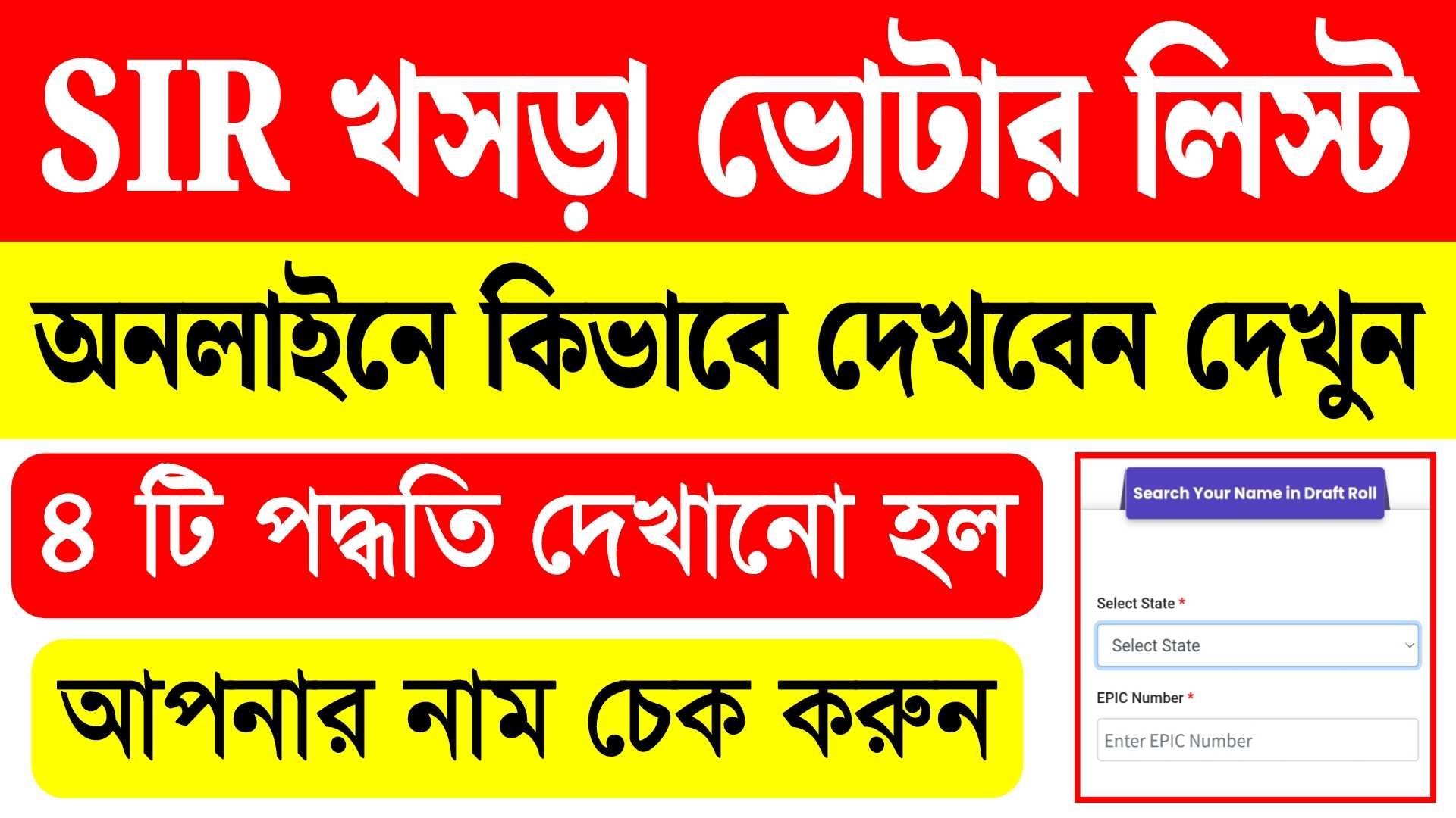 SIR‌ খসড়া ভোটার লিস্টে নাম আছে কিনা চেক করুন | SIR Draft Roll West Bengal